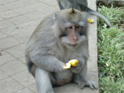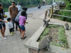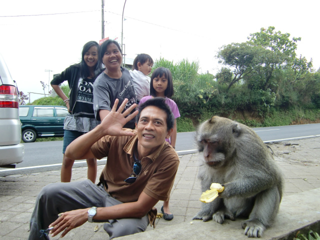 シンガラジャからブドゥグル湖に行く途中にある駐車場に休憩で立ち寄ったところ、かなりの数の猿がいました。もともと近隣の山に生息しているようですが、餌目当てで集まってくるようです。ちゃんと餌を売る人もいました。ただ、ボス猿(写真)が現れるまではたくさんの猿がいましたが、ほとんどの猿がボス猿を恐れてか、いなくなりました。遠くからボス猿がいなくなるのを待っている様子でした。
