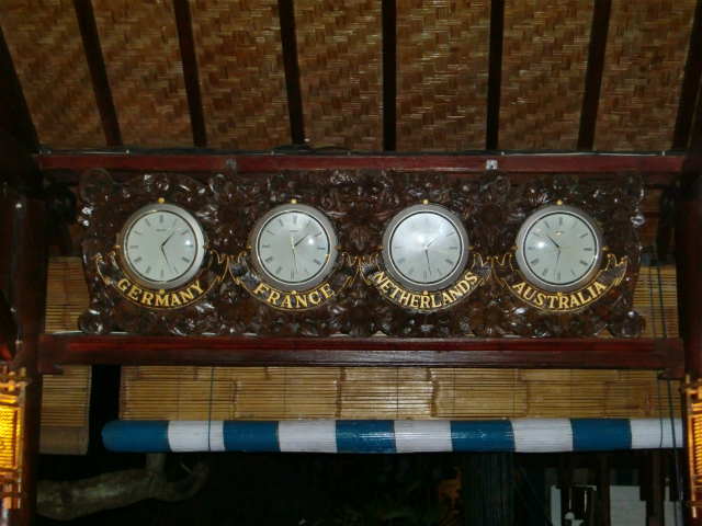 | このホテルは、バリ島の北部にあり空港から3時間ほどの場所にあります。基本的にビーチリゾートではありますが、海の反対側は田んぼと山です。シンガラジャに近いため交通量は多くホテル近くにもレストランやショップなどもありますがそれほど多くはありません。レストランにかけてあった時計の写真を載せていますが、日本時間の時計がないということは、日本人はほとんど来ないということかもしれませんね。プライベートビーチもありますが、子供が遊んでいるだけで誰も泳いでいませんでした。 ※宿泊料金 一部屋3200円 税金・サービス料込み (朝食付き) |