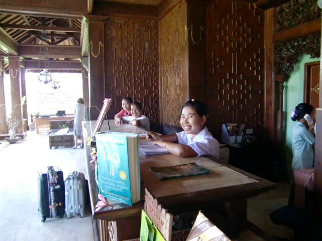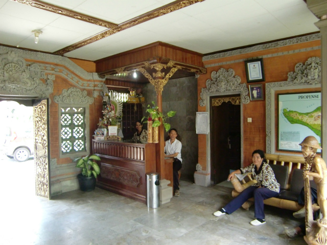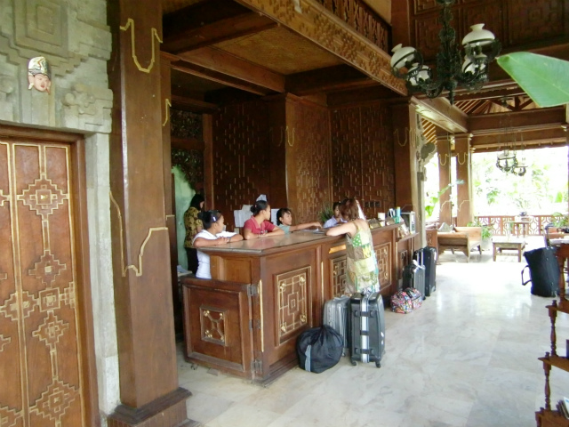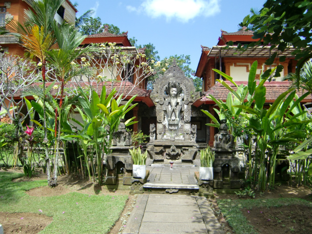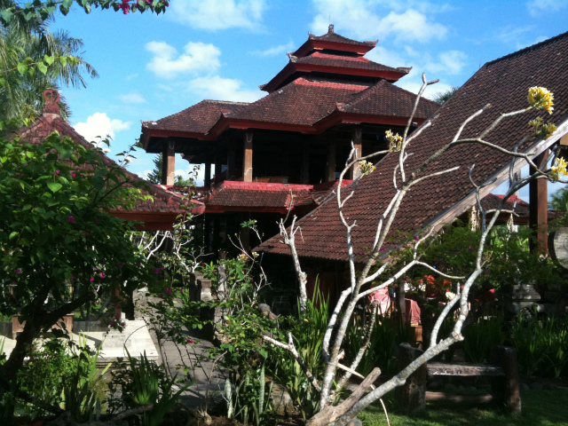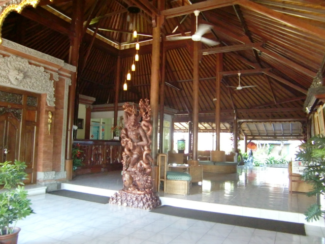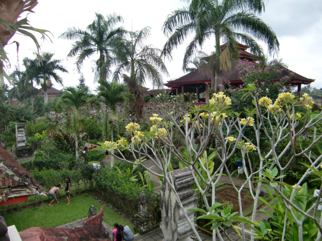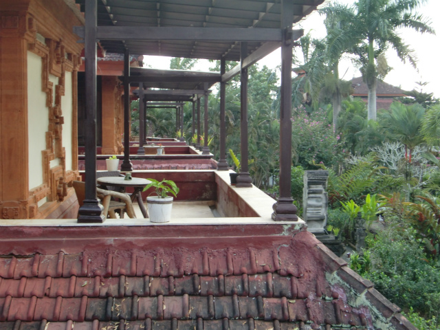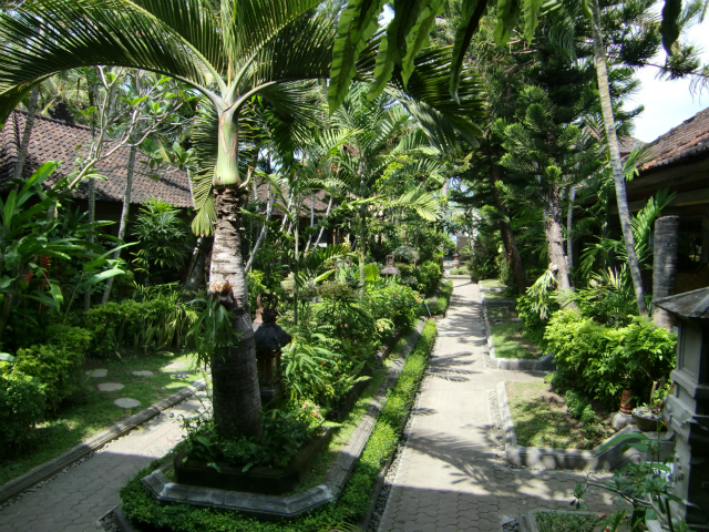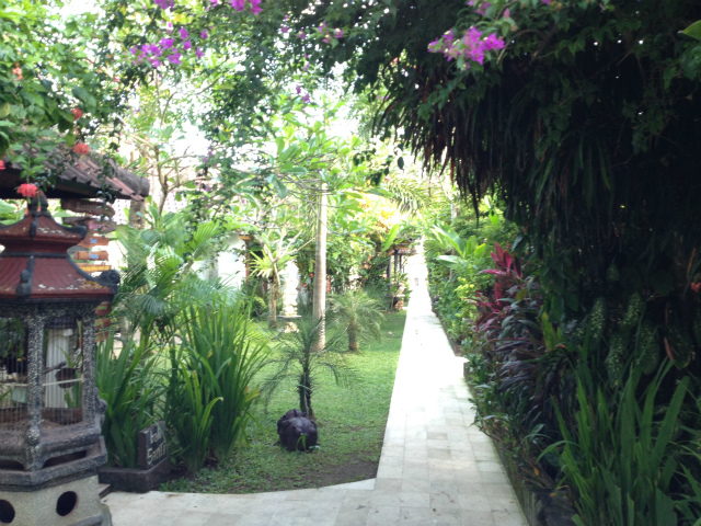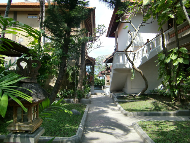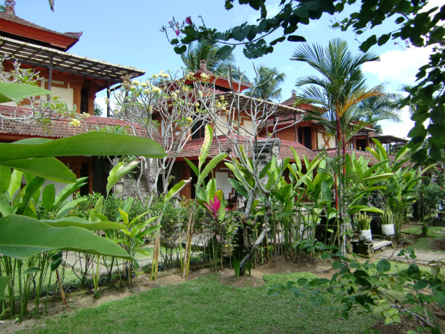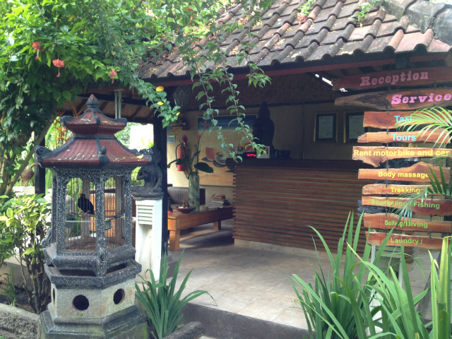 | このホテルは見た目は古く最初は大丈夫かなと心配しましたが、敷地内に入るとそこは綺麗に整備され古さはあるものの結構心地よい感じです。 最初にビックリしたのは、敷地内に子供(高校生?)が沢山いたことです。確認してみるとホテルと隣接している学校のオーナーが一緒で、将来の就職支援の一環で子供たちを研修させているとのことでした。子供たちはまじめに花壇整備をしたり草むしりをしたりとみんなまじめそうでした。挨拶もすれ違いざまに「Hello」と明るく挨拶してくれますし、こちらから話しかけると恥ずかしそうに受け答えしてくれました。子供たちは、英語と日本語を勉強しているそうです。まだまだですが・・・。ホテルのスタッフも高校卒業したばかりみたいなスタッフがほとんどです。時々、おじさんスタッフを見かけました。ホテルの周りは基本的に田園地帯で静かでいいところです。心と体を癒すにはもってこいかもしれません。時間が止まった感じです。 ウブド中心部までは少し遠いですが、ホテルのシャトルバスで10分程度で行けます。 ※宿泊料金 一部屋3300円 税金・サービス料込み (朝食付き) |