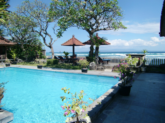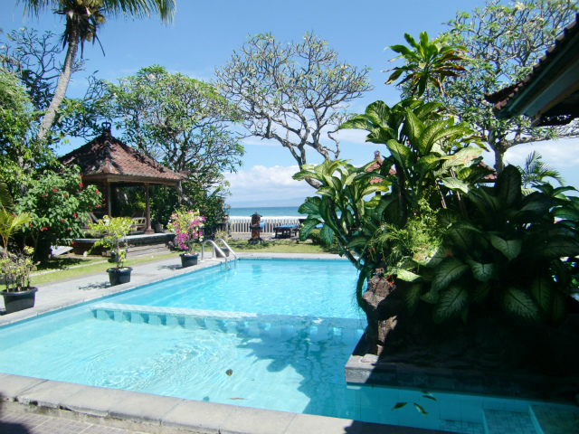 | このホテルはチャンディダサのチャンディダサのメイン通りに面していて何かと便利なホテルです。ホテルの中に進むとチャンディダサの海に直接面していて、綺麗な海が一望できます。ヌサペニダ島も確認できます。 ※宿泊料金 一部屋3200円 税金・サービス料込み (朝食付き) |