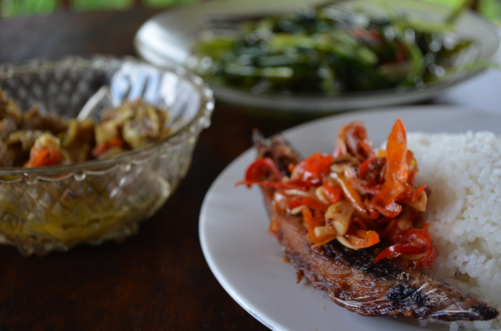 | 通常はありませんが、何度も泊まって仲良くなったので夕食をご馳走になりました。魚・空芯菜・鶏肉。奥さん、料理上手〜! | |||||