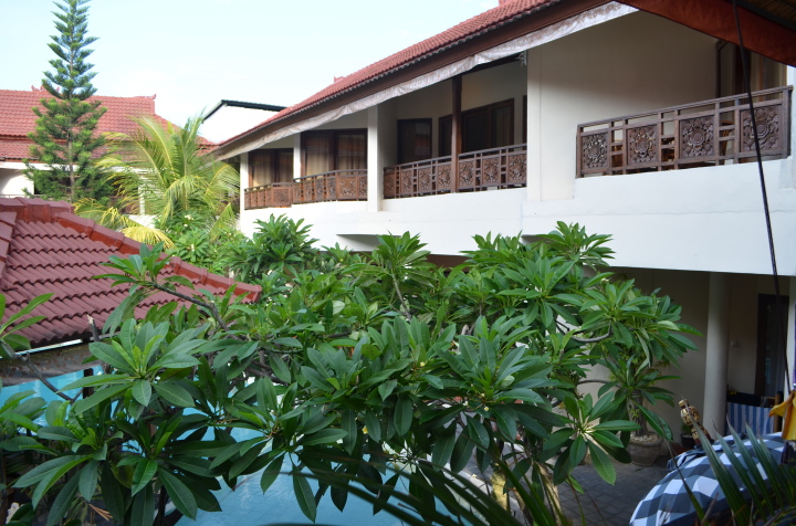 | このホテルは、クタ地区のバクンサリ通りから少し路地を入ったところにあります。外からは写真のような雰囲気を感じることは出来ませんが、中に入るとご覧の通りです。このホテルは、クタ地区の中でも綺麗で安くサービスも良いことから人気があり、ハイシーズンはほとんど満室です。かなり前から予約の手配をしたほうが良いと思います。若者が集まるLegian(レギャン)までも歩いて10分ぐらいですし、クタビーチへも5分程度でいけるので何かと便利かなと思います。Wi-Fiもパスワード無しで使えますし毎日水を2本サービスしてくれます。買っても安いですが。このホテルからの移動についてもホテルの送迎用の車で送ってくれます。空港まで50,000Rp(450円)でした。 宿泊料金 通常1泊5,000円〜6,000円位(朝食付き) 今回はお正月明けということもあり1泊3,000円(朝食付き)でした。 |