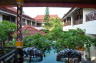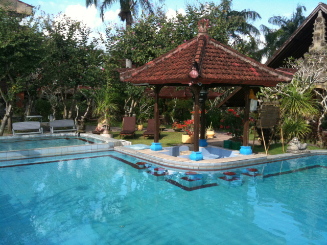 | このホテルは、バリ島北部のシンガラジャ(Singaraja)にあります。シンガラジャは元の首都でもあり町はにぎやかですが、このホテルはシンガラジャの自然に囲まれた場所にあります。ホテルの横には川が流れ心安らぐホテルです。シンガラジャやロビナへ観光されるときにはもってこいかも。都会から離れ身も心もリフレッシュしたい方にはお勧めです。詳しくは、ホテルのホームページをご覧ください。 |