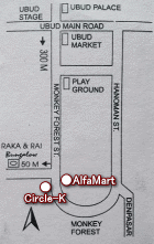 ![]() モンキーフォレストから王宮方面に向かい、コンビニ(アルファーマート)の前から左に入ると、50メートル先です。 |
