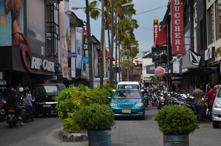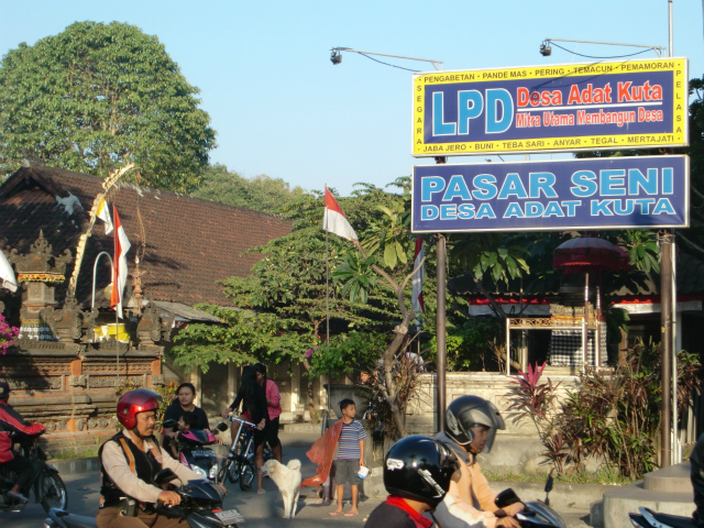 クタ(Kuta)は、西向きの海岸に砂浜が広がる町で、かつては静かな漁村でしたが、1960年代、サーフィンと夕陽の名所としてインドネシア国外からサーファーやヒッピーなどが集まるようになり、北隣のレギャンとともにレギャン通りを中心に観光地化し、ホテルやレストラン、バー、ディスコ、土産物店などが並ぶ、バリ島きっての繁華な商業地区となっています。