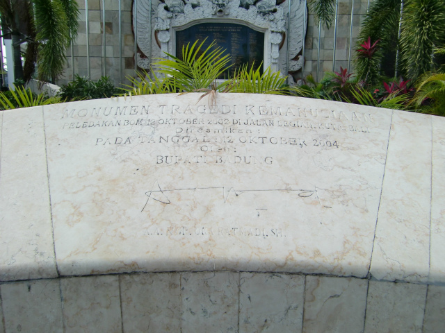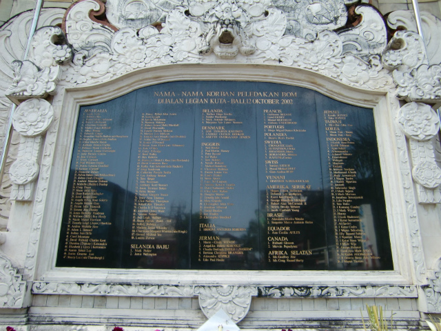 背景には、インドネシア国内でのアメリカやイギリスの進める対テロ戦争・イラク戦争への反発があり、表立って反対しない政府に対して、市民の不満が募っていることも関連があると見られています。この事件で多くの犠牲者が出ましたが、日本人も2名含まれていました。このような事件が二度と起きない様、心より祈ります。 |