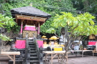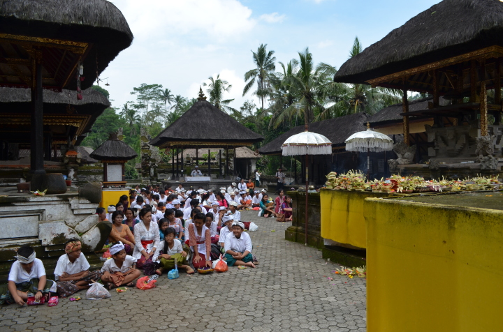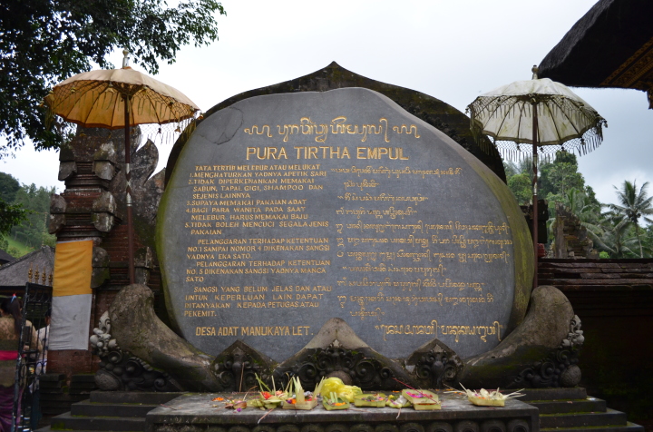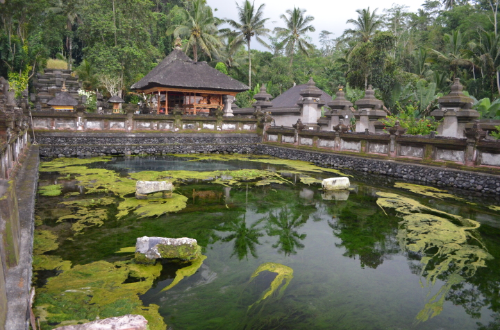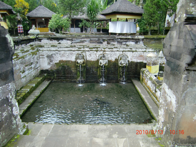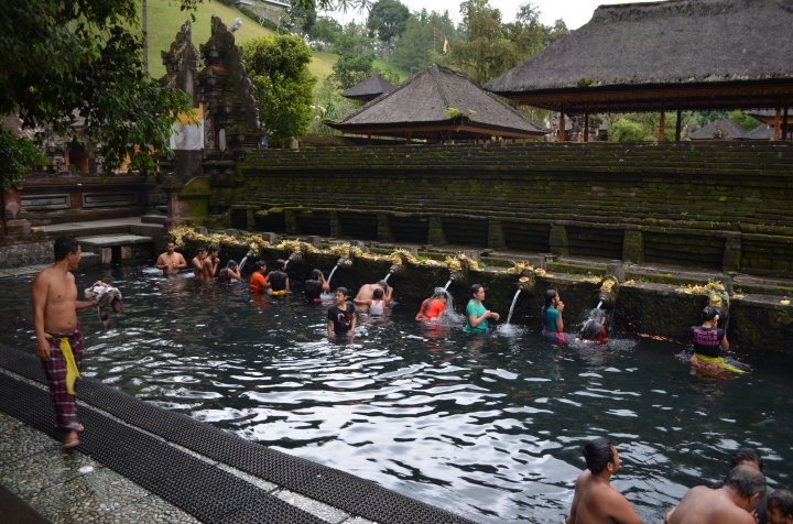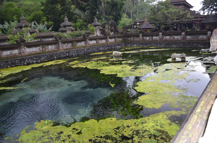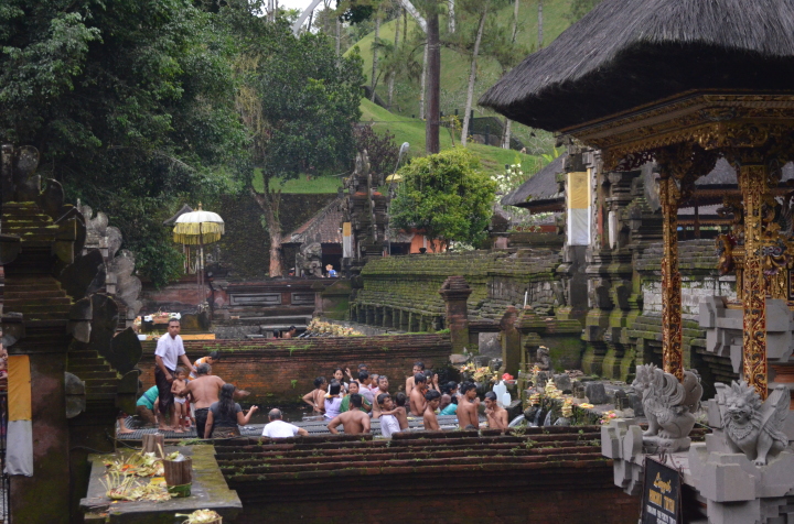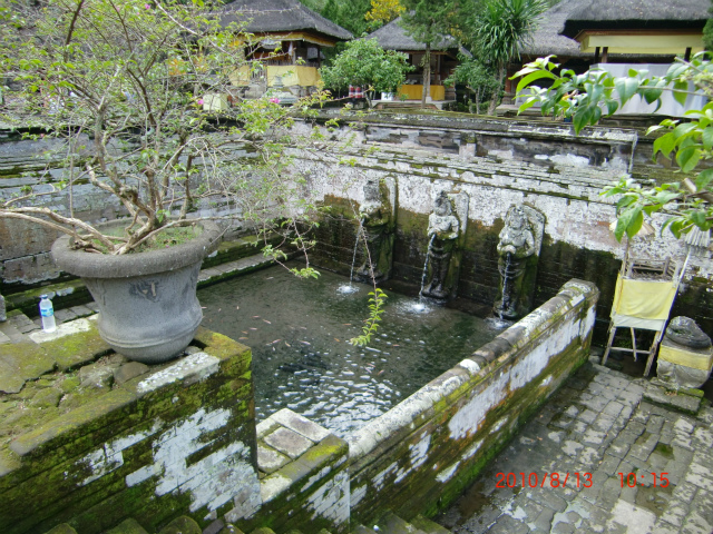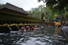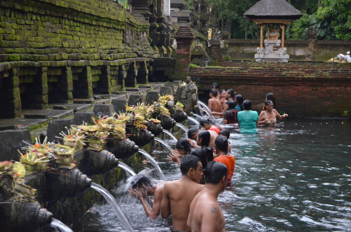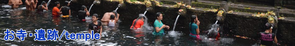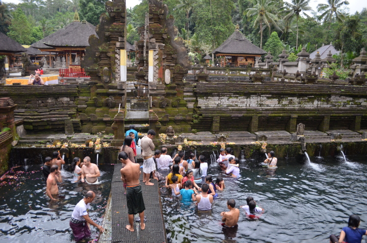 | ティルタエンプル寺院は、バリ島やインドネシア全土からヒンドゥー教の人々が清め神に祈りをささげるため来る聖なる水の中が湧き出るのヒンズー教寺院です。人々はお寺にお参りをする前に神木に祈りをささげたのち聖水で身も心も清めます。 |