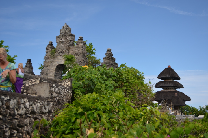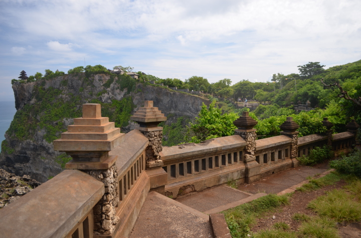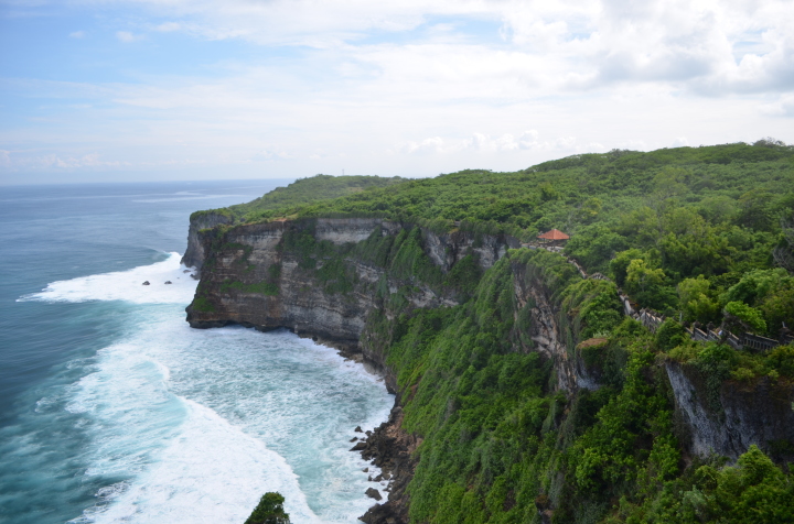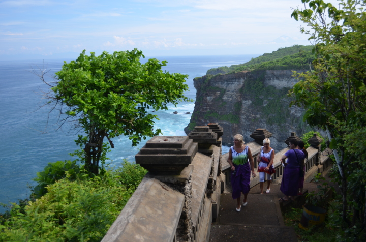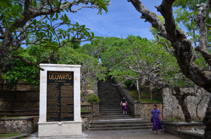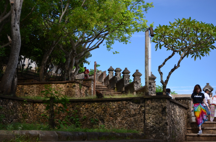 | ウルワツ寺院は、インドネシア・バリ島のバドゥン半島南西端の海岸沿いに位置する寺院で、海の霊がまつられています。11世紀にジャワの僧ウンプ・クトゥランによって建立され、16世紀に高僧ダン・ヒャン・ニラルタが増築を行ったとされる重要な寺院です。晩年のニラルタはウルワツに隠遁し、解脱に達したといわれています。 ※夕方からの時間帯はケチャダンス見学や夕日を見に来る旅行客が増えますので大変込み合います。 ※寺院の駐車場などにお猿さんがたくさんいます。バック・帽子・カメラなどにちょっかいを出しますので十分注意が必要です。 |