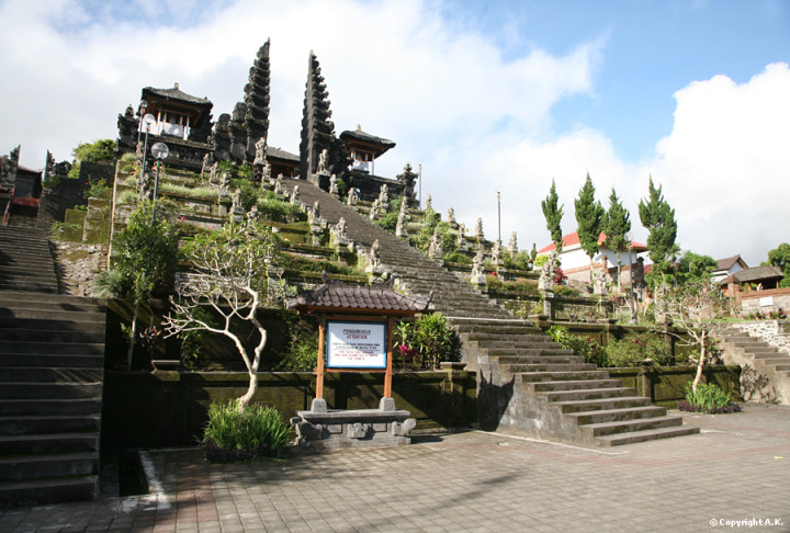 | ブサキ寺院(Pura Besakih)は、インドネシア・バリ島にあるバリ・ヒンドゥー教総本山の寺院です。アグン山の中腹に位置しており、30余の寺院の集合体です。 |
